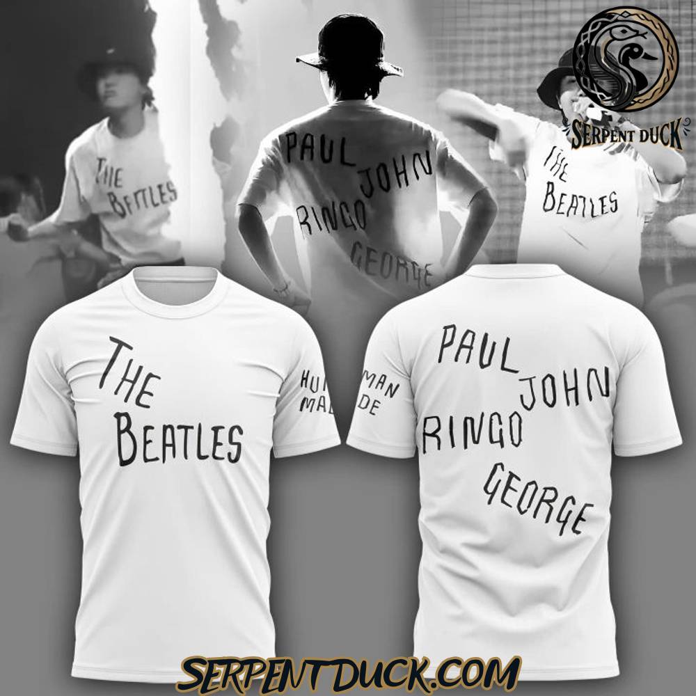 The “Beatless” T-Shirt features a retro-inspired graphic that mimics classic Beatles merch but with a twist—replacing “The Beatles” with “Beatless” in a vintage font, a nod to J-Hope’s love for wordplay and his bright personality. The back of the shirt showcases the names of the Fab Four (Paul, Rinco, George, John) with cheeky misspellings, adding a layer of humor and originality. The monochrome color scheme keeps it sleek and versatile, while the soft cotton fabric ensures it’s as comfortable as it is stylish.